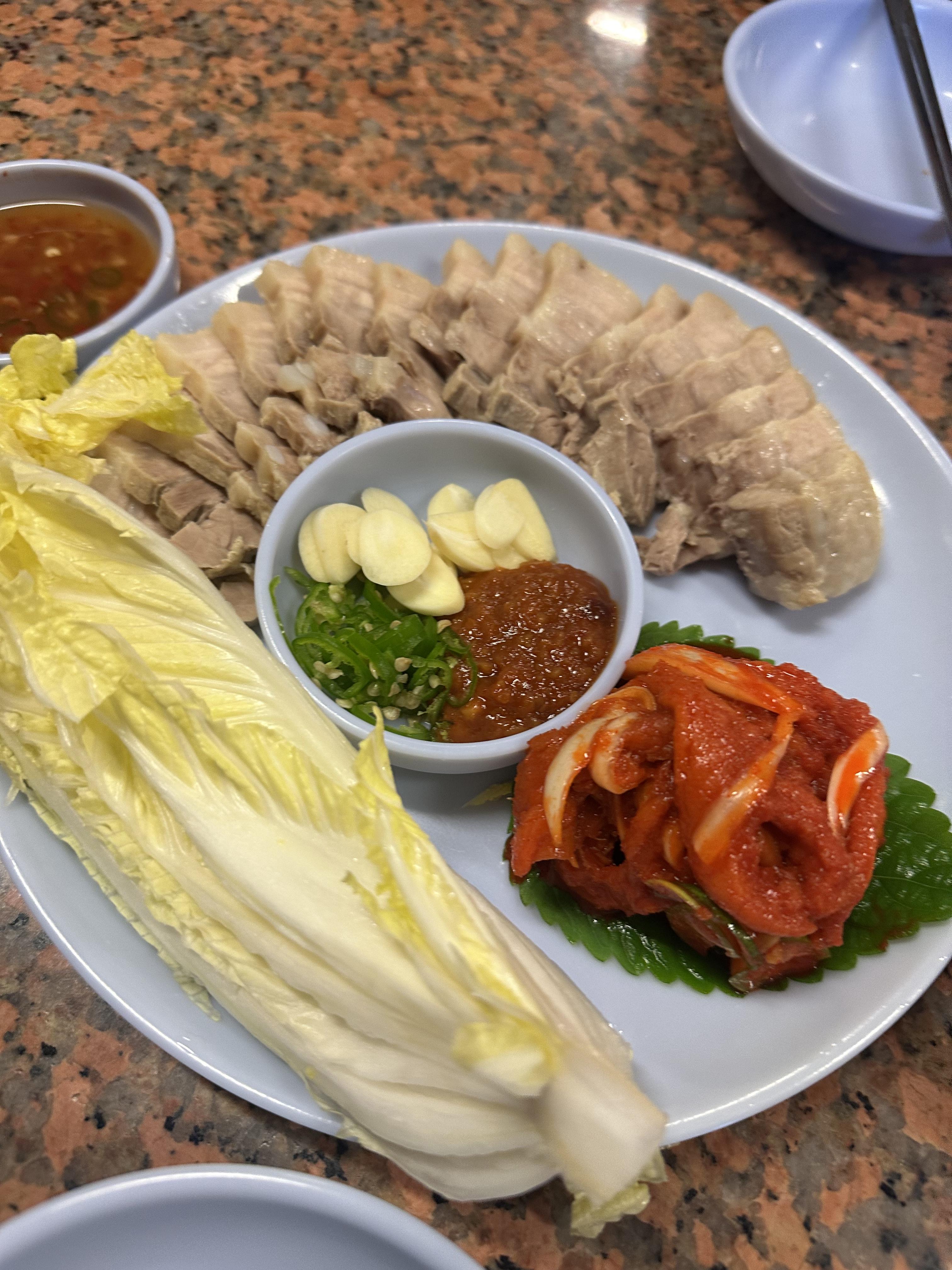 보쌈의 고기는 정말 부드럽고, 기름기가 적당하게 배어 있어서 한 입 먹을 때마다